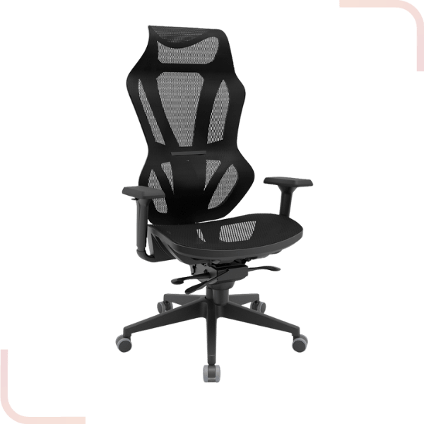 enquanto o apoio de cabeça e os braços reguláveis proporcionam um suporte ergonômico ideal para longas jornadas.