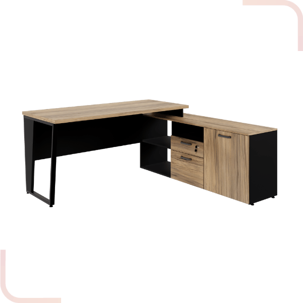 seu armário lateral, oferece 01 gaveta, 01 espaço para pasta e 01 porta, garantindo organização e praticidade no dia a dia.