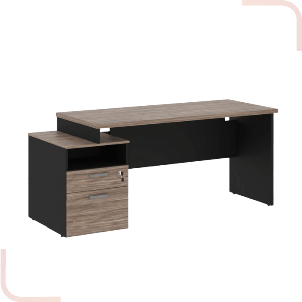 com um design elegante e moderno, esta mesa oferece funcionalidade com seu gaveteiro pedestal, que possui 1 gaveta e 1 porta-pasta.