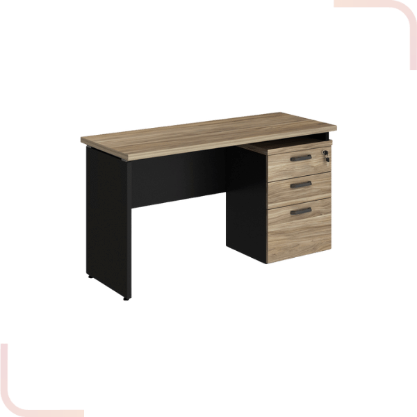 com duas gavetas e uma porta pasta, esta mesa oferece amplo espaço para organização, mantendo seu ambiente de trabalho funcional e livre de desordem.
